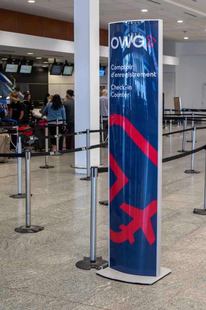 To make your journey as smooth as possible from the moment you arrive at the terminal, a gigantic monolith bearing our colours will help you easily identify the OWG check-in counters, where our partners, supervised by our team, will be happy to welcome you, check you in and wish you a safe and pleasant High Love flight!