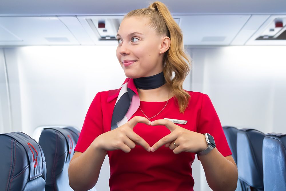 Afin de créer un uniforme représentant sa passion pour le voyage et son amour des voyageurs, OWG a travaillé avec un designer pour développer une gamme de tenues vestimentaires High Love, mettant en valeur nos agents de bord.
